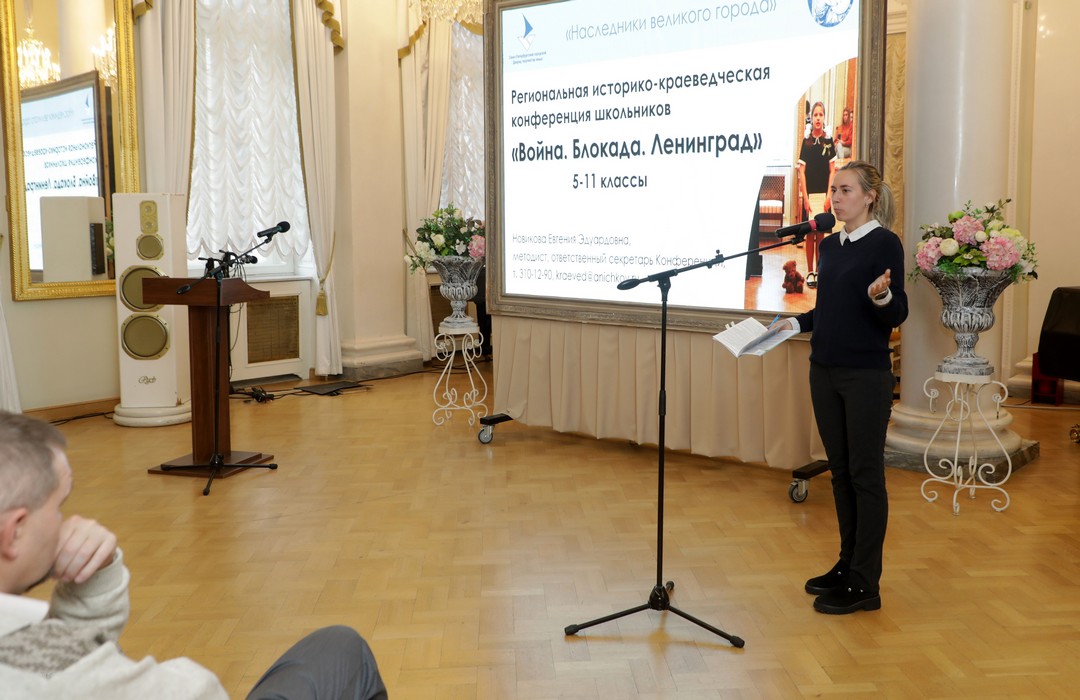 С приветственным словом выступила заведующий сектором исторического краеведения и школьного музееведения Санкт-Петербургского городского Дворца творчества юных Ирина Григорьевна Васильева: «В этом году программа «Наследники великого города» отмечает 35-летие. И это говорит о том, что она устойчива, мобильна и готова к новым вызовам и свершениям».