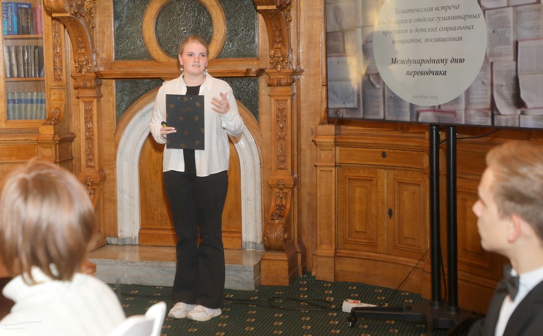 В Универсальном читальном зале библиотеки Аничкова дворца состоялась тематическая встреча коллективов Отдела гуманитарных программ и детских социальных инициатив, посвященная Международному дню переводчика.