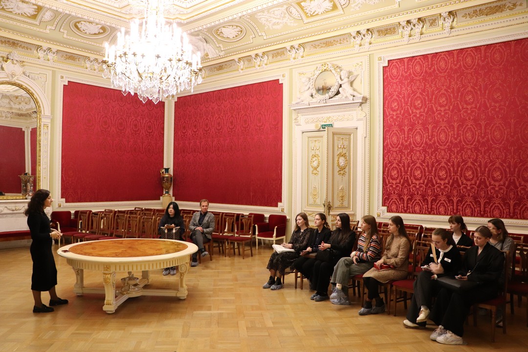 А с внутренним убранством Аничкова дворца гостей познакомила Александра Дмитриевна Виговская, экскурсовод Музея истории Санкт-Петербургского городского Дворца творчества юных. Александра Дмитриевна не только провела экскурсию, но и открыла для студентов новые факты из жизни Дворца.