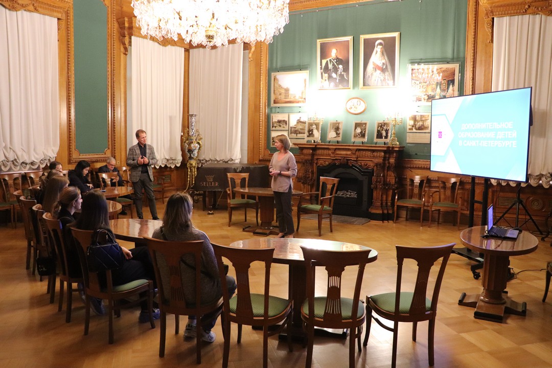 Встречу открыла Мария Константиновна Мавлюдова, заведующий Региональным модельным центром дополнительного образования детей. Она рассказала о тенденциях развития системы дополнительного образования в Санкт-Петербурге, а также о деятельности Дворца. Гости узнали о структурных подразделениях Городского Дворца творчества юных, особенностях образовательных программ и рабочего процесса.