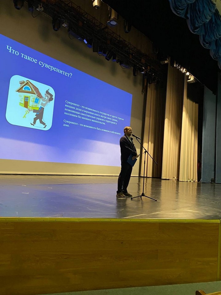 Перед лицеистами выступил Иван Михайлович Колосов, заведующий Отделом техники Дворца и учитель информатики лицея. Он рассказал о том, что такое цифровой суверенитет, почему он важен для национальной безопасности, экономики и технологической независимости России, а также как каждый гражданин – особенно молодёжь – может внести свой вклад в развитие отечественных цифровых решений.