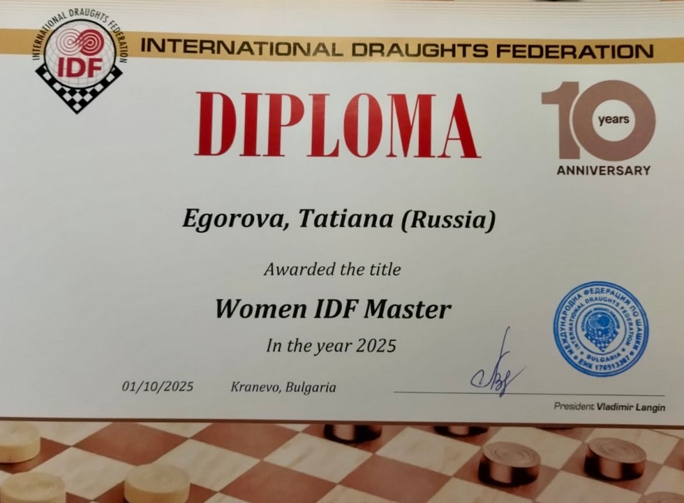 29 октября состоялось открытие соревнований, на котором Татьяне Егоровой был вручен диплом о присвоении международного звания женского Мастера IDF. Позже стартовал турнир по молниеносной игре, в котором спортсменка уверенно завоевала золотую медаль!