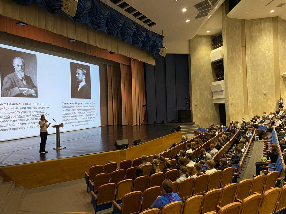 На встрече выступила учитель биологии Аничкова лицея Евгения Владимировна Ашик. Она рассказала лицеистам о жизненном пути Мичурина — его упорстве, экспериментах и глубокой любви к природе, которая привела к созданию сотен новых сортов плодовых растений. Евгения Владимировна показала, как идеи Мичурина остаются актуальными и сегодня — от устойчивости культур к климатическим изменениям до этических вопросов современной генетики.