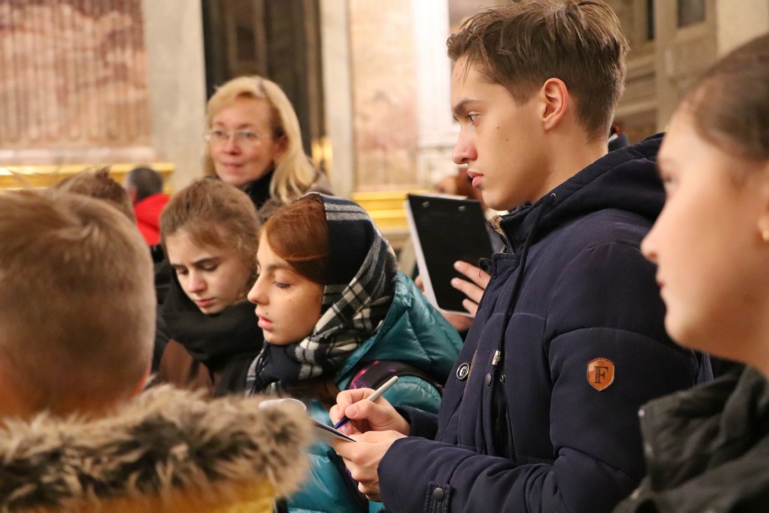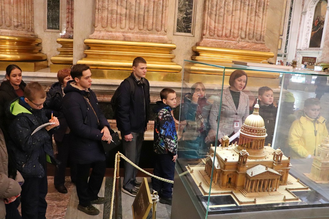 В Государственном музее «Исаакиевский собор» методист сектора музейной педагогики Кристина Викторовна Иванова познакомила ребят и педагогов с особенностями проведения экскурсии в Исаакиевском соборе, поделилась своим опытом и рассказала, на что стоит обратить внимание во время экскурсии: как взаимодействовать с экскурсантами, как поставить группу, чтобы всем было видно объект рассказа и многое другое. Мастер-класс также прошёл в формате экскурсии, поэтому ребята узнали не только теорию и практику экскурсоведения, но и познакомились с историей строительства Исаакиевского собора.