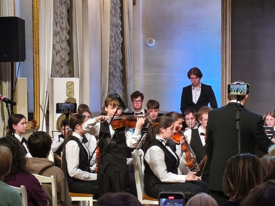 Младший ансамбль скрипачей порадовал зрителей весёлыми пьесами композитора Ж. Металлиди. Такое мероприятие символизирует передачу опыта молодым поколениям и подтверждает приверженность традициям Аничкова дворца, основанным на непрерывности и преемственности музыкального искусства.