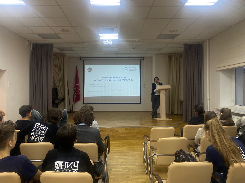 Профориентационая встреча для учащихся 10 классов Аничкова лицея состоялась на прошлой неделе. Лекция «Новые методы поиска месторождений ценных металлов» прочла профессор кафедры геохимии Санкт-Петербургского государственного университета, Лауреат премии Президента РФ в области науки и инноваций для молодых учёных за 2023 год, кандидат геолого-минералогических наук Ольга Валентиновна Якубович. Лекция прошла под эгидой Передовой инженерной школы СПбГУ.