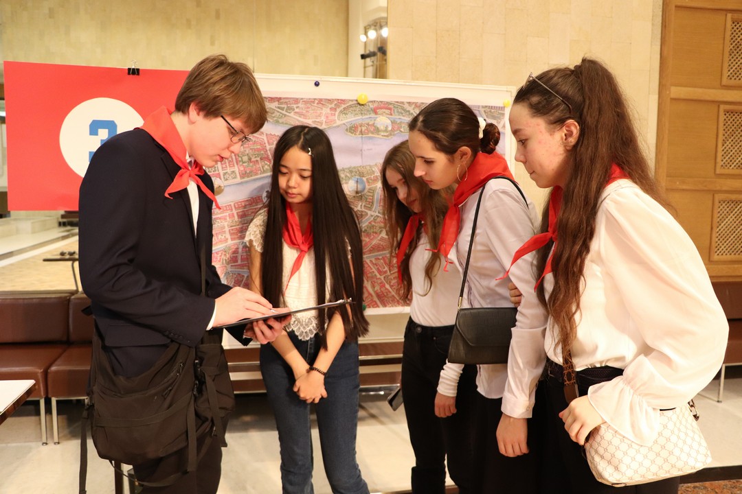 Старт игре был дан в зрительном зале, где слушатели увидели документальный сюжет о юных героях блокадного Ленинграда. Затем группы участников отправились по маршрутному листу на пункты назначения, оформленные экспонатами музея Дворца творчества детей и молодежи «Молодежный творческий Форум Китеж плюс».
