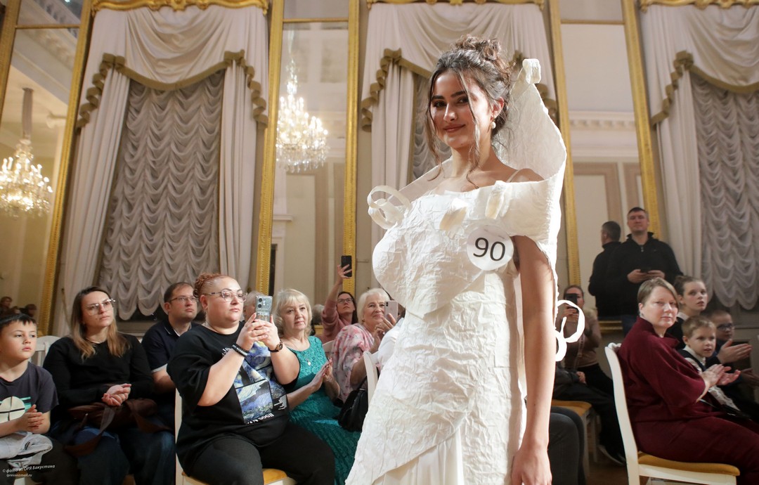 Невероятный полет фантазии увидели члены жюри и зрители. По условия конкурса работы должны быть выполнены с использованием нетрадиционных для создания одежды материалов, различных фактур и только белого цвета. Участники ответственно подошли к созданию своих моделей: использовали пленку в качестве юбки, строительные жгуты как кости древних животных, из бумаги делали голову динозавров и многое другое!