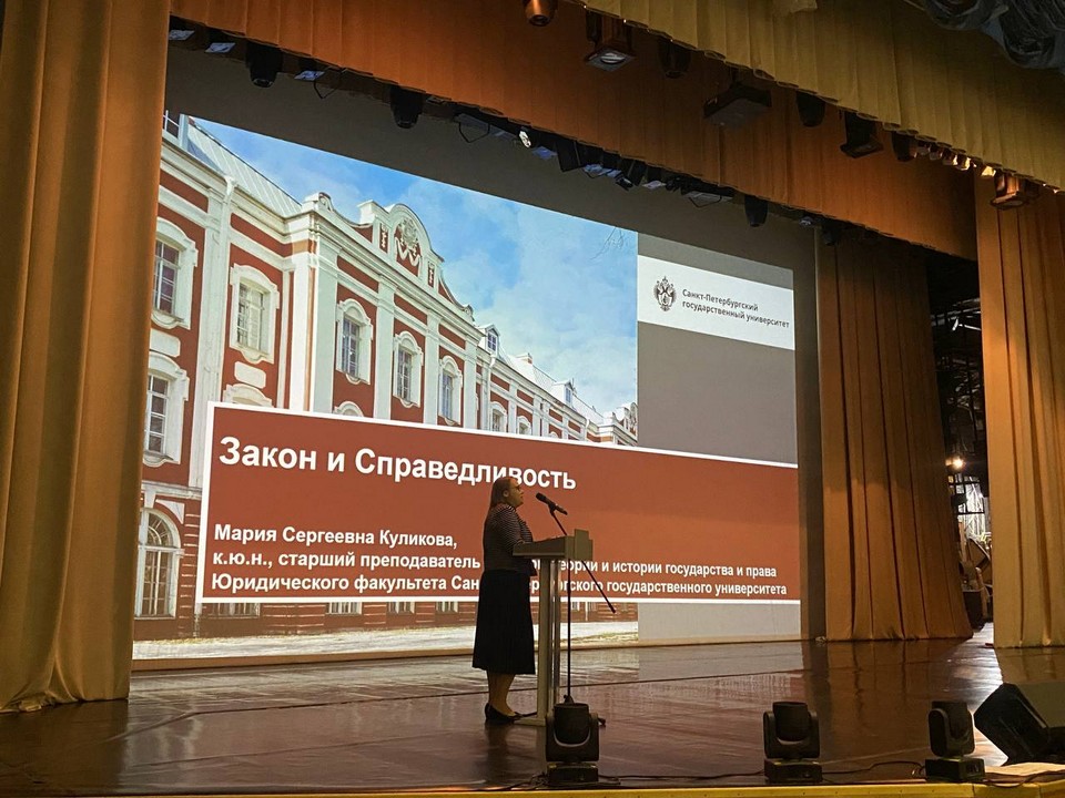 Перед учащимися выступила Мария Сергеевна Куликова – кандидат юридических наук, ведущий научный сотрудник Юридического факультета Санкт-Петербургского государственного университета.