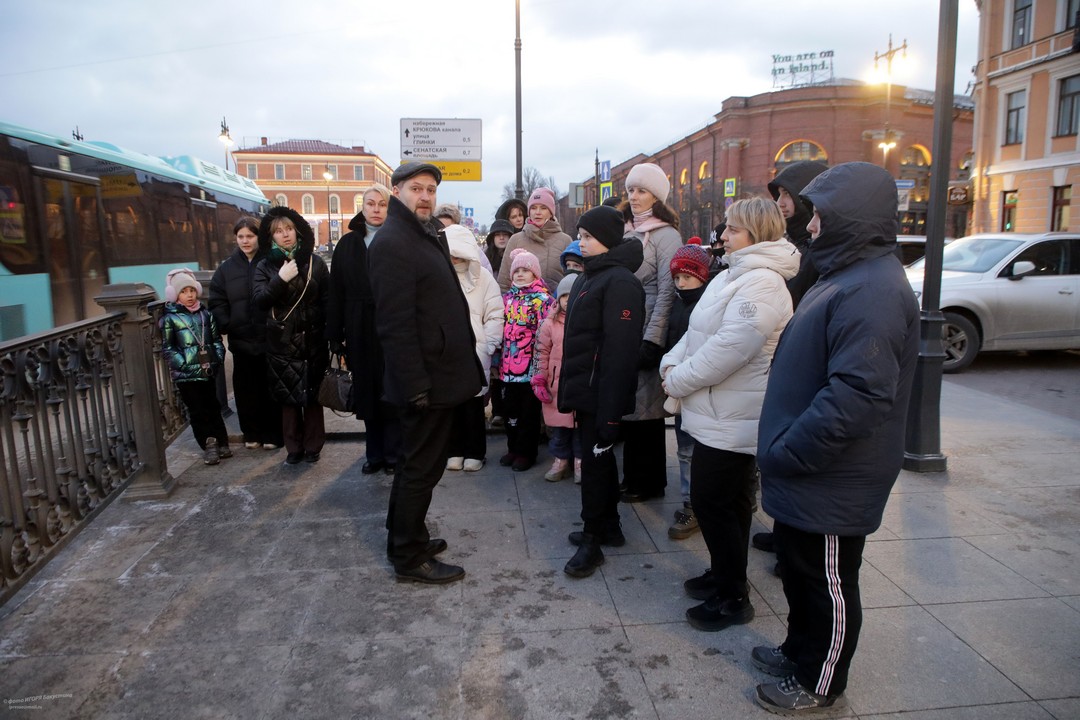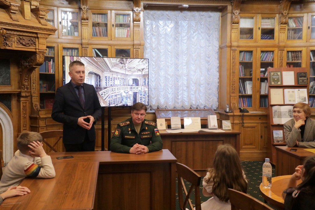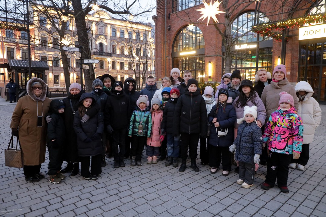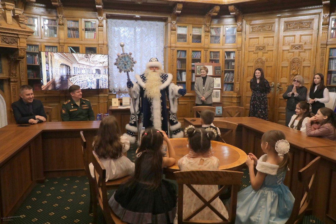 Специальная двухдневная программа была организована для детей военнослужащих, находящихся в длительных командировках и в зоне проведения специальной военной операции. Они посетили мастер-класс «Рождественская декоративная композиция» от педагога Отдела предшкольного образования Дворца Александры Викторовны Ершовой, побывали на экскурсии по новогоднему Петербургу вместе с Ильей Владимировичем Вагановым, посетили Эрмитаж и современное культурное пространстве «Новая Голландия». А перед спектаклем ребята собрались в Универсальном читальном зале Библиотеки Аничкова дворца, где их поздравили с наступающими праздниками и вручили новогодние подарки, генеральный директор Санкт-Петербургского городского Дворца творчества юных Мария Катунова, временно исполняющий обязанности заместителя командующего войсками Ленинградского военного округа по военно-политической работе полковник Виталий Владимирович Янковец и заместитель председателя Комитета по образованию Санкт-Петербурга Петр Владимирович Кузьмин. «Дорогие ребята и их родители, от командования Ленинградского военного округа я поздравляю вас! Как же здорово встречать Новый год в таком историческом месте. Желаю всего наилучшего, чтобы все ваши самые заветные мечты исполнились! С наступающим Новым годом!», – отметил Виталий Владимирович.